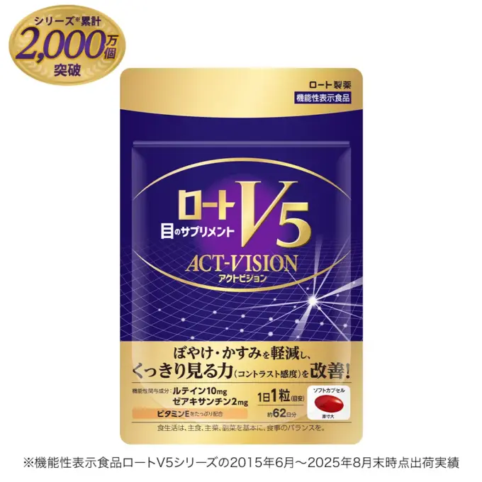 ロートV5アクトビジョンは、ロート製薬が開発する機能性表示食品のアイケアサプリです。